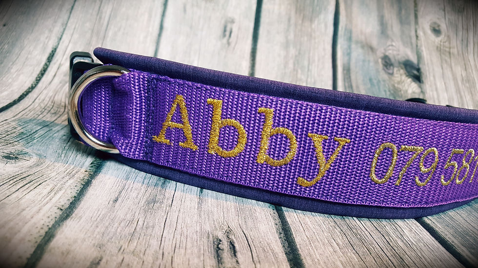 Wunderschönes einzigartiges Hundehalsband bestickt mit Ihrem Wunschnamen oder / und Telefonnummer