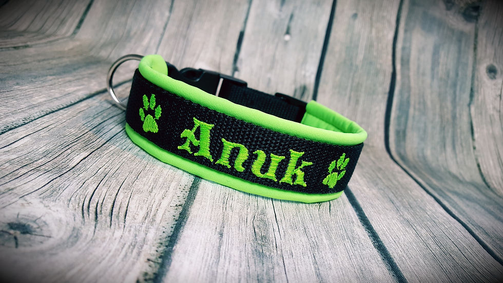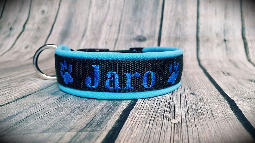 Das Halsband wird aus hochwertigen Materialien verarbeitet, das Polster ist aus Softshell, ein sehr angenehmes Material, schmutzabweisend und tolle Farben.