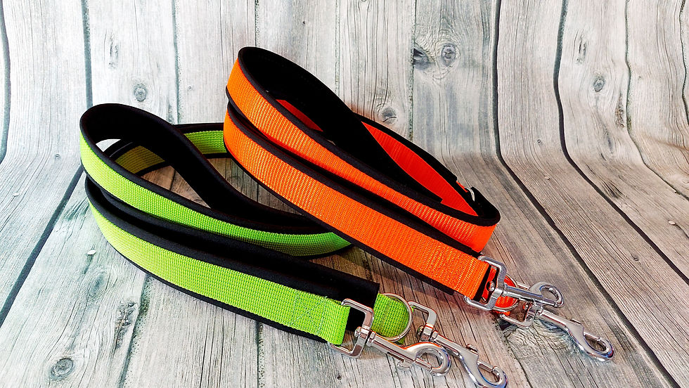 Die Leinen gibt es in 1,6cm, 2cm oder 2,5cm Breit und wird beim kauf dem bestellten Halsband angepasst, mit 2 Karabiner und 3 Ringen zum Verstellen.